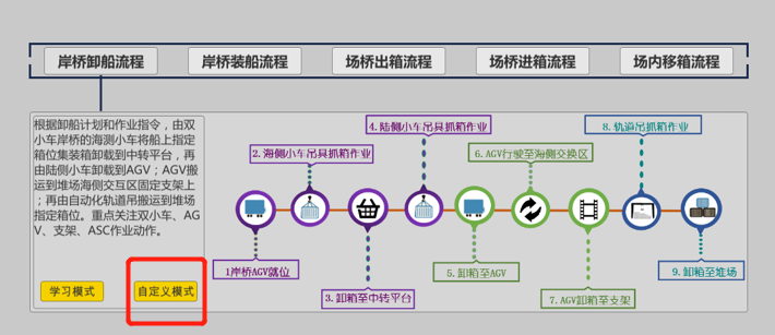 步骤一:进入任务选择界面,鼠标悬浮在“岸桥卸船”按钮上方,打开卸船流程说明面板,如图2所示;